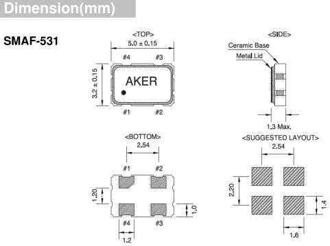 AKER晶振,SMAF-531晶振,5032mm有源晶振,5032mm體積的石英晶體振蕩器,有源晶振,該產品可驅動2.5V的溫補晶振,壓控晶振,VC-TCXO晶體振蕩器產品,電源電壓的低電耗型,編帶包裝方式,可對應自動高速貼片機自動焊接,及IR回流焊接(無鉛對應),為無鉛產品,超小型,質地輕.產品被廣泛應用到集成電路,程控交換系統(tǒng),無線發(fā)射基站.