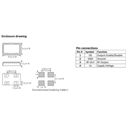 | Enclosure (see drawing) (LxWxH) | 5.16x3.35x1.3 max. | mm | IEC 61837‐2 | ||