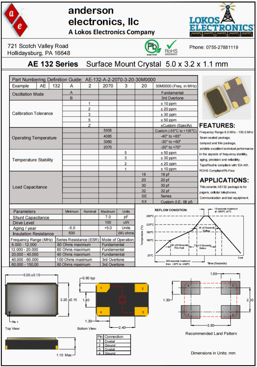 6G移動通訊晶振,Anderson高品質晶體,AE-132-A-2-2070-3-20-30M0000晶振