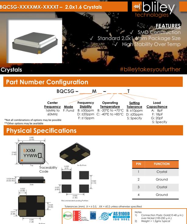Bliley晶振,BQCSG晶振,BQCSG-16.000M-FDBBFT晶振,貼片晶振本身體積小,超薄型石英晶體振蕩器,特別適用于有目前高速發(fā)展的高端電子數(shù)碼產(chǎn)品,因為晶振本身小型化需求的市場領(lǐng)域,小型,薄型是對應(yīng)陶瓷振蕩器(偏差大)和普通的石英晶體振蕩器(偏差小)的中間領(lǐng)域的一種性價比較出色的產(chǎn)品.產(chǎn)品廣泛用于筆記本電腦,無線電話,衛(wèi)星導(dǎo)航SSD,USB,Blu-ray等用途,符合無鉛焊接的高溫回流焊曲線特性.Bliley晶振公司發(fā)展歷史:
