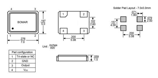 Bomar晶振,B1325-AACS3T-10.000000晶振,時鐘振蕩器
