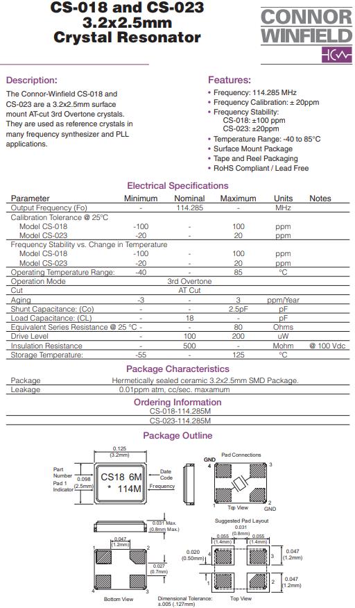 康納溫菲爾德晶振,CS-048晶振,CS-048-048.0M晶振,小型貼片石英晶振,外觀尺寸具有薄型表面貼片型石英晶體振蕩器,特別適用于有小型化要求的市場領(lǐng)域,比如智能手機,無線藍牙,平板電腦等電子數(shù)碼產(chǎn)品.晶振本身超小型,薄型,重量輕,晶體具有優(yōu)良的耐環(huán)境特性,如耐熱性,耐沖擊性,在辦公自動化,家電相關(guān)電器領(lǐng)域及Bluetooth,WirelessLAN等短距離無線通信領(lǐng)域可發(fā)揮優(yōu)良的電氣特性,滿足無鉛焊接的回流溫度曲線要求.Connor-Winfield Corporation 是一家私人控股的美國電子產(chǎn)品制造商。1963 年成立后,Connor-Winfield 主要專注于設計和制造用于各種電子應用的石英計時電路和振蕩器。在 1990 年代,Connor-Winfield 擴展到其他產(chǎn)品領(lǐng)域,同時繼續(xù)關(guān)注其核心計時根源。