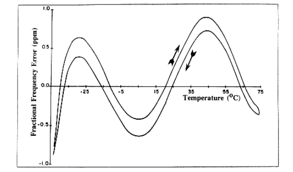 Retrace限制了在OCXO開關(guān)循環(huán)的應(yīng)用中使用OCXO可實(shí)現(xiàn)的精度,當(dāng)溫度循環(huán)范圍為0°C至60°C和-55°C至+85°C時(shí),TCXO中典型的滯后值范圍為1ppm至0.1ppm,在少數(shù)SC切割(MCXO)諧振器中觀察到小于1×10-8的滯后,MCXO早期模型中典型的MCXO石英晶體諧振器滯后是108中的幾個(gè)部分,典型的OCXO回掃規(guī)格,在約25°C的24小時(shí)關(guān)閉期后,范圍從2x 10-8到1x10-9,在關(guān)閉期間的低溫儲存和延長關(guān)閉期通常會使回掃更糟,滯后和回掃的原因尚不清楚,迄今為止的實(shí)驗(yàn)證據(jù)尚無定論.