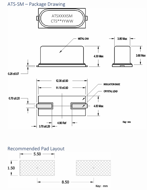 ATS250BSM-1E,49SMD封裝晶振,CTS計算機應用晶振