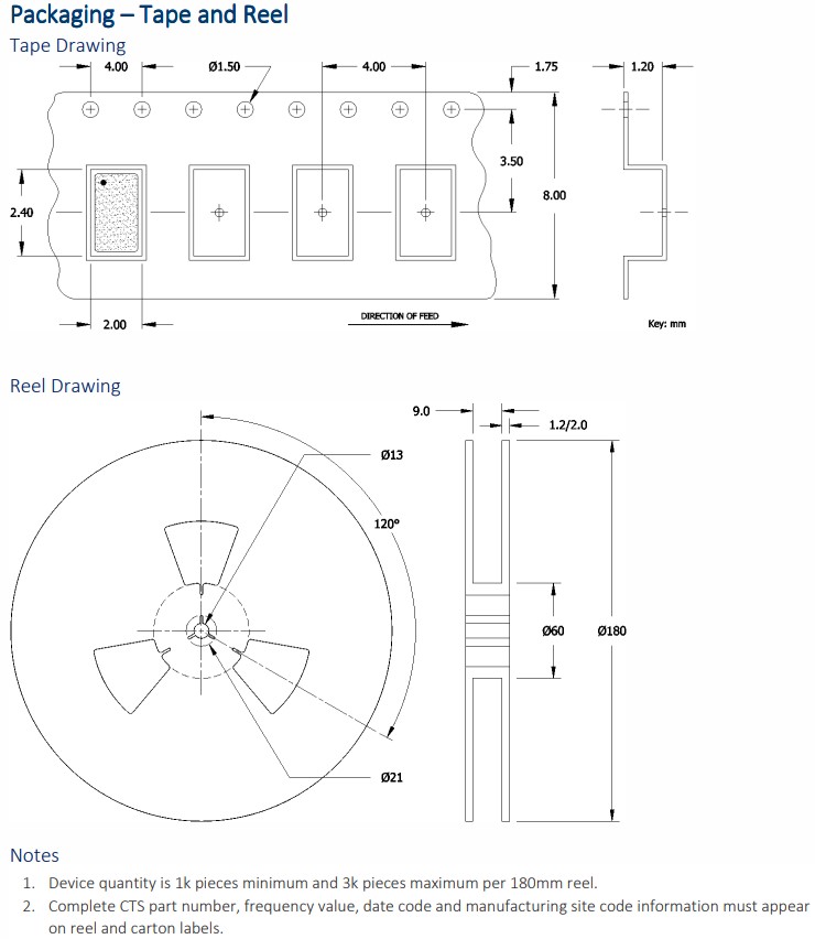 | 402F4001XIAR | CTS晶振 | 402 | MHz Crystal | 40MHz | 4-SMD, No Lead |