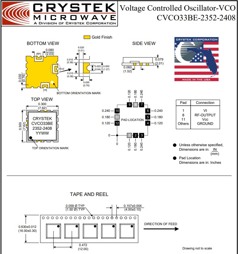 衛(wèi)星通信系統(tǒng)和基站等應(yīng)用CVCO33BE-2352-2408,Crystek Corporation一直提供頻率產(chǎn)品,包括石英晶體、XOs(時(shí)鐘振蕩器)、TCXOs(溫度補(bǔ)償晶體振蕩器)、VCO(壓控振蕩器),VCXOs(壓控晶體振蕩器)。Crystek運(yùn)營(yíng)著兩個(gè)致力于頻率控制的部門。Crystek晶振致力于開發(fā)和制造使用石英諧振器的頻率產(chǎn)品。Crystek Microwave為微波行業(yè)開發(fā)頻率控制和支持產(chǎn)品。其它產(chǎn)品包括:PLL(鎖相環(huán))頻率合成器、RedBox VCOs、RF同軸電纜組件、RF電纜連接器、散裝RF同軸電纜、RF功率檢波器、濾波器、衰減器、DC模塊、無(wú)源倍頻器、RFPRO(袖珍參考振蕩器)、連接器放大器、VCO評(píng)估板和 看見(jiàn) 基于時(shí)鐘振蕩器和VCO。