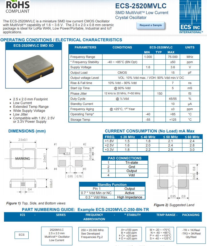 更多>>ECS-2520MVLC-250-BN-TR低電流MultiVolt振蕩器適合各種時鐘應用