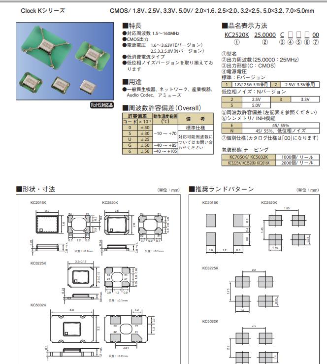 | KC2520K4.09600C1GE00 | 日本京瓷晶振 | KC2520K, Kyocera | Active | 4.096MHz | 1.6 V ~ 3.63 V | -40°C ~ 85°C |
