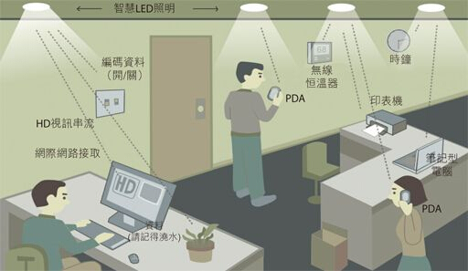 光和無(wú)線電波一樣,都是屬于電磁波的一種,傳播網(wǎng)絡(luò)信號(hào)的基本原理是一致的,給普通的LED燈泡裝上微芯片,可以控制它每秒數(shù)百萬(wàn)次閃爍,亮了表示1,滅了表示0,其頻率太快,根本察覺(jué)不到,漲敏傳感器卻可以接收到這些變化,就這樣,二進(jìn)制的數(shù)據(jù)就快速編碼成燈光信號(hào)并進(jìn)行了有效的傳輸,燈光下的電腦通過(guò)一套特制的接收裝置,讀懂燈光里的”莫爾斯密碼”.”有燈光的地方就有網(wǎng)絡(luò)信號(hào),關(guān)掉燈,網(wǎng)絡(luò)全無(wú)”,與現(xiàn)有的WIFI相比,未來(lái)的可見(jiàn)光通訊安全又經(jīng)濟(jì).WIFI依然看不見(jiàn)的無(wú)線電波傳輸,設(shè)備功率越來(lái)越大,局部電磁輻射增強(qiáng);無(wú)線信號(hào)穿墻而過(guò),網(wǎng)絡(luò)信息不安全,這些安全隱患在可見(jiàn)光通訊中一掃而光”,且光譜比無(wú)線電頻譜大10000倍,意味著更大的帶寬和更高的速度,網(wǎng)絡(luò)設(shè)置幾乎不需要任何新的基礎(chǔ)設(shè)施.
