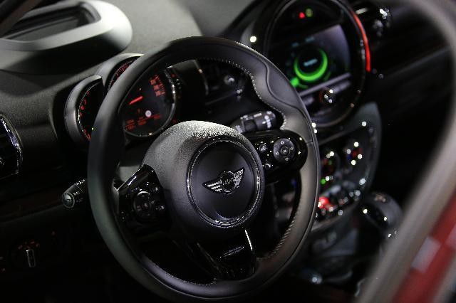 寶馬公司2015年6月24日在德國(guó)柏林推出的全新Mini Clubman中配備的方向盤和儀表板(圖)