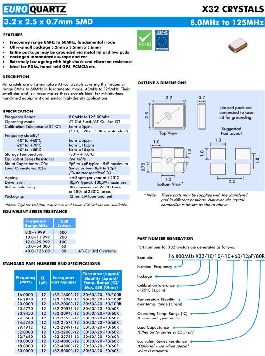 | Euroquartz晶振規格 | 單位 | X32晶振頻率范圍 | 石英晶振基本條件 |