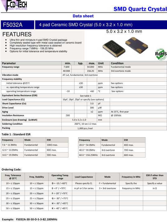 FCD-Tech晶振,F5032A晶振,F5032A-3050DS3-24.000MHz晶振