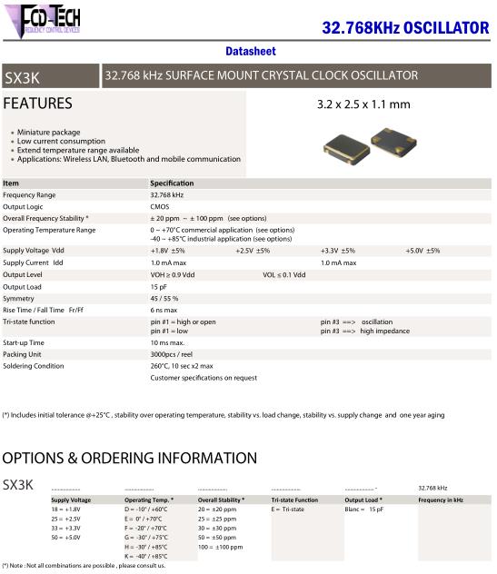 FCD-Tech晶振,SX3K晶振,SX3K-18D30E15-32.768kHz晶振