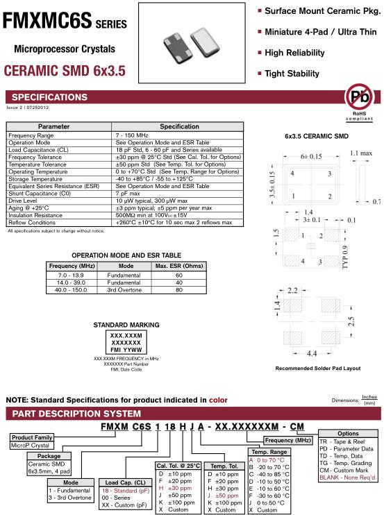 FMI晶振,FMXMC6S晶振,FMXMSC6S118HJA-16.000M-CM晶振