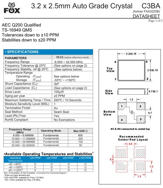 | FOX晶振規格 | 單位 | C3BA晶振頻率范圍 | 石英晶振基本條件 | |