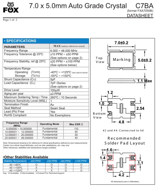 | FOX晶振規(guī)格 | 單位 | C7BA晶振頻率范圍 | 石英晶振基本條件 |