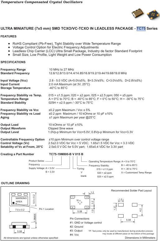 Fortiming晶振,TC75晶振,TC75-19M800-BV016B晶振