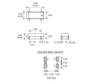 | 頻率溫度特征 | f_tem | ±25 × 10-6/±5 × 10-6 | 超出標準的規格請聯系我們. |
