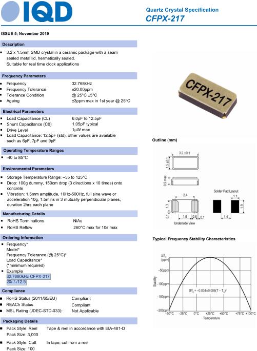 IQD晶振,CFPX-217晶振,32.7680kHz-CFPX-217-20/12.5晶振