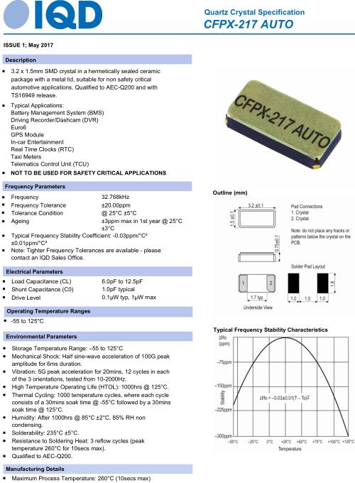 IQD晶振,CFPX-217AUTO晶振,32.7680kHz-CFPX-217AUTO-20/12.5晶振