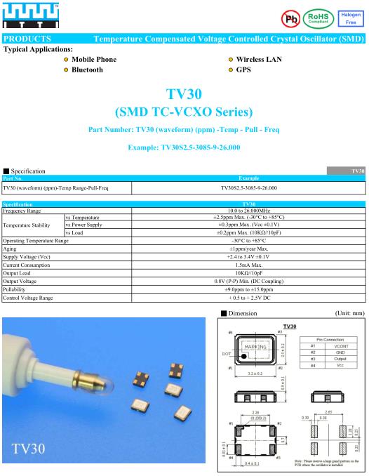 ITTI晶振,TV30晶振,TV30S2.5-3085-9-26.000晶振