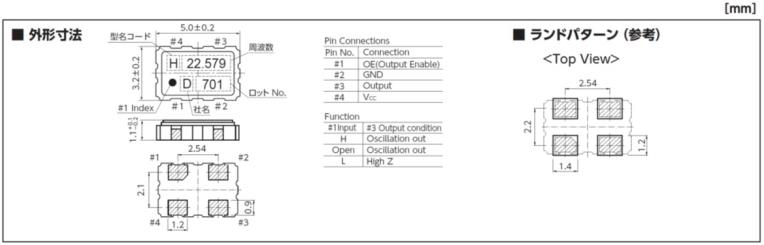 | 消費電流 | 7.7mA max, 5.5mA max,4.8mA max,2.9mA max(20≦fo≦50MHz) |