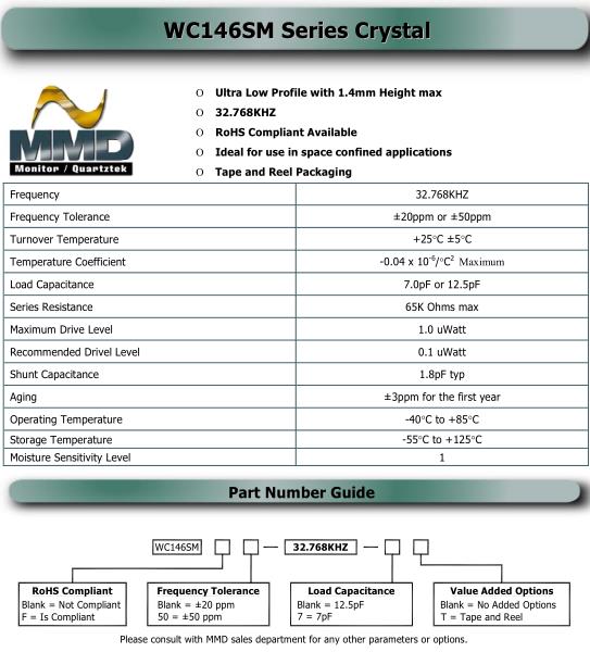 | MMDCOMP晶振規格 | 單位 | WC146SM晶振頻率范圍 | 石英晶振基本條件 | |