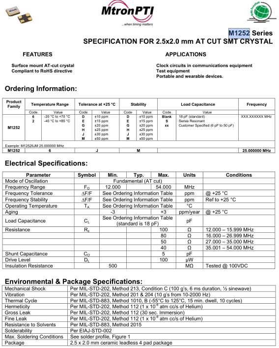 麥特倫皮晶振,M1380晶振,M13802MM20.000000MHz晶振,貼片晶振本身體積小,超薄型石英晶體振蕩器,特別適用于有目前高速發展的高端電子數碼產品,因為晶振本身小型化需求的市場領域,小型,薄型是對應陶瓷振蕩器(偏差大)和普通的石英晶體振蕩器(偏差小)的中間領域的一種性價比較出色的產品.產品廣泛用于筆記本電腦,無線電話,衛星導航SSD,USB,Blu-ray等用途,符合無鉛焊接的高溫回流焊曲線特性.MtronPTI與基礎材料科學和制造的完全控制垂直整合,為高可靠性高性能互聯網數據定時,公共安全和軍用/航空通信與控制,儀器儀表和能源管理應用提供解決方案。基于佛羅里達州奧蘭多市的設計,銷售以及在北美,亞洲和歐洲的生產基地,MtronPTI是LGL集團(NYSE MKT:LGL)的子公司。