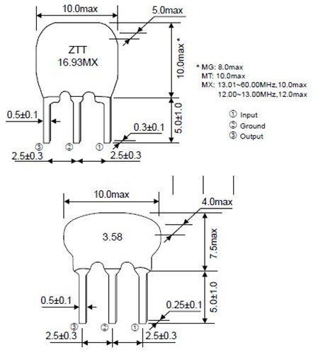 ZTT陶瓷濾波器尺寸圖