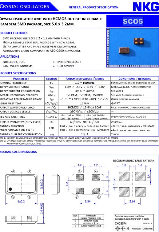| Nominal frequency | F N | 1.0 ~ 160MHz | Fundamental or 3rd overtone design |