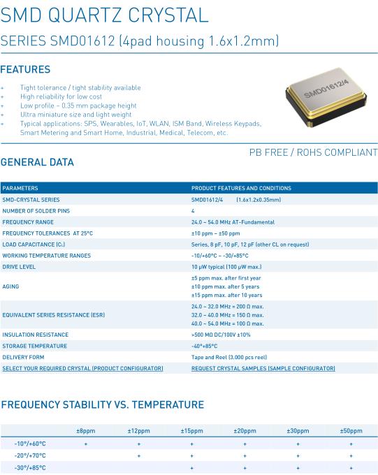 | SMD-CRYSTAL SERIES | SMD01612/4 (1.6x1.2x0.35mm) |