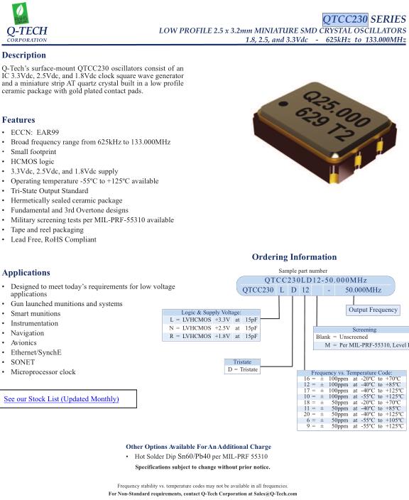 Q-Tech晶振,QTCC230L晶振,QTCC230LD12-26.000MHz晶振