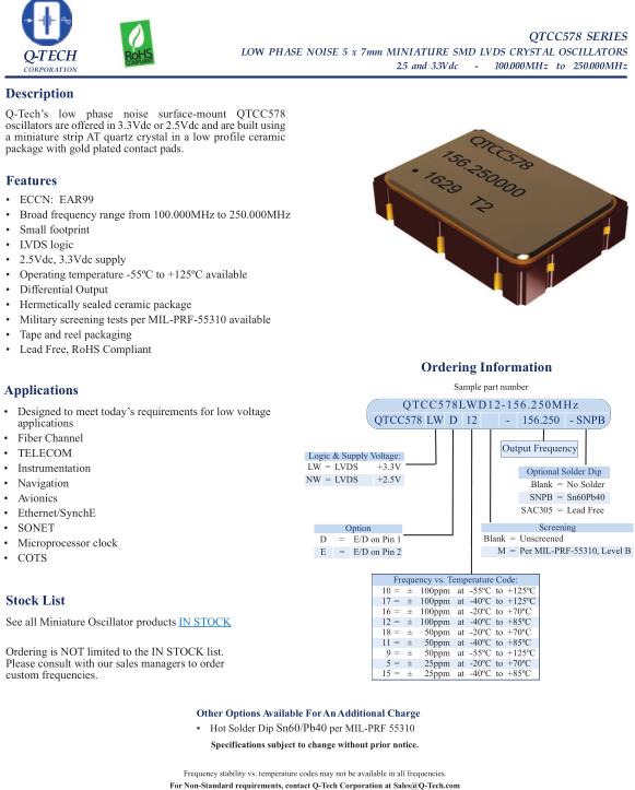 Q-Tech晶振,QTCC578LW晶振,QTCC578LWD12-100.000MHz晶振