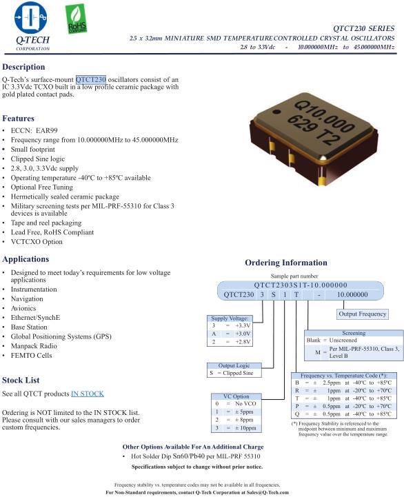 Q-Tech晶振,QTCT230晶振,QTCT2303S1T-10.000000晶振