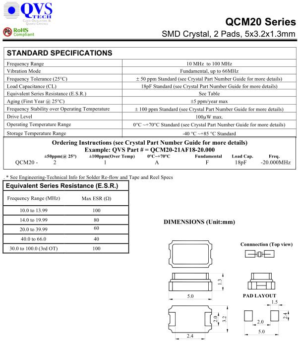| Frequency Range | Fundamental | 8.0MHz to 40.0 MHz |