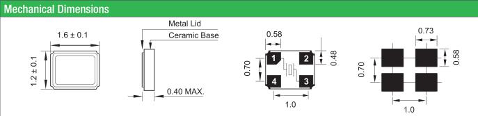 | Frequency Stability over Temperature Range | See Stability vs. Temperature Table |