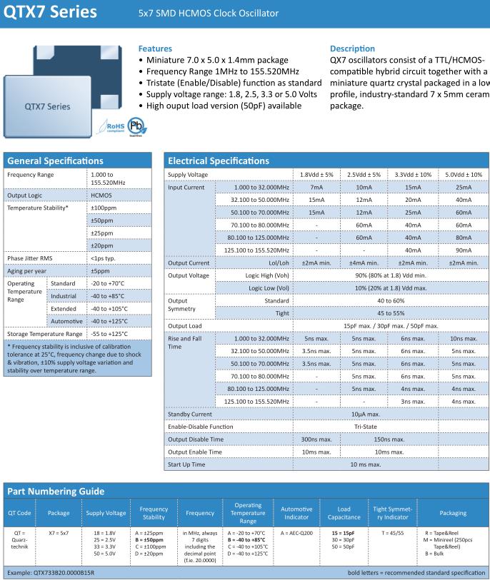 Quarztechnik晶振,QTX7晶振,QTX733B20.0000B15R晶振