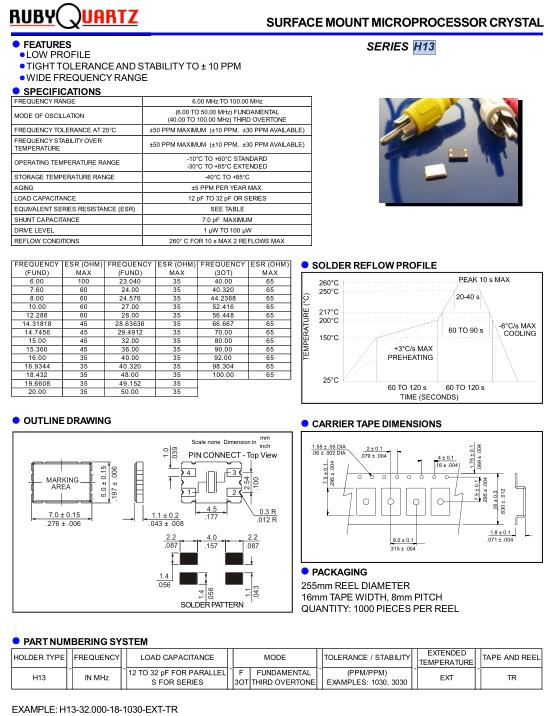 Rubyquartz晶振,H13晶振,H13-32.000-18-1030-EXT-TR晶振