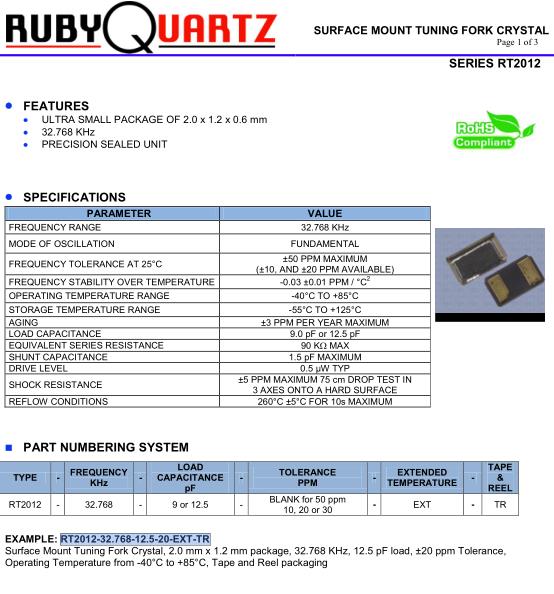 Rubyquartz晶振,RT2012晶振,RT2012-32.768-12.5-20-EXT-TR晶振