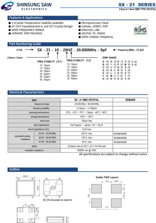 SHINSUNG晶振,SX-21晶振,SX-21-10-20HZ-20.000MHz-9pF晶振