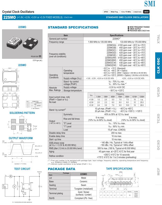 SMI晶振,22SMO晶振,OSC差分晶振