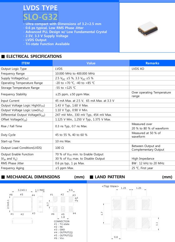 | RMS Phase Jitter | 0.6 ps typ., 1 ps Max. | BW : 12 kHz to 20 MHz |