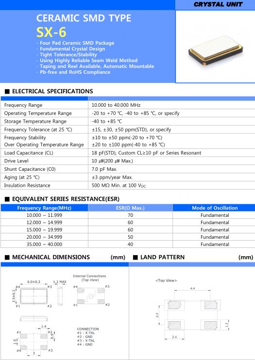 用于JEDEC J-STD-020D.01回流條件的耐熱可用性需個別判斷。請聯系我們以便獲取相關信息。Sunny晶振,SX-16晶振,SS8130J6–24.00000–T&R晶振.