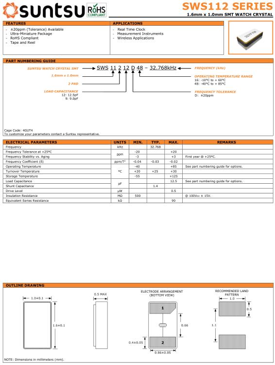 | Suntsu晶振規(guī)格 | 單位 | SWS112晶振頻率范圍 | 石英晶振基本條件 | |