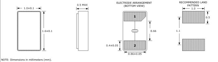 | 串聯(lián)電阻(ESR) | R1 | 如下表所示 | -40°C — +85°C, DL = 100μW | |