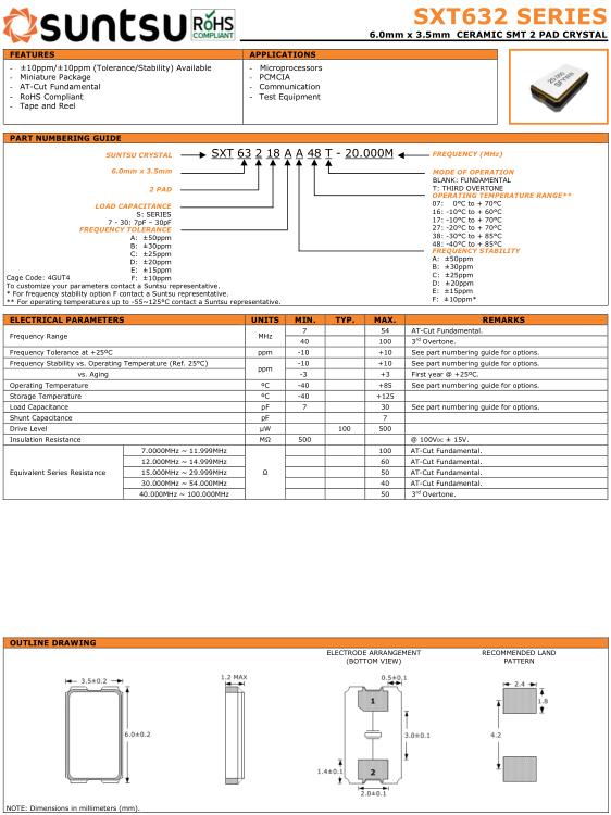 Suntsu晶振,SXT632晶振,SXT63218AA48T-20.000M晶振