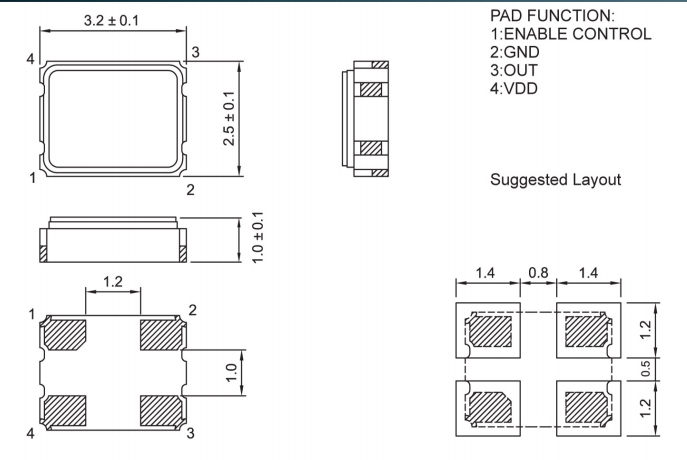 - 尺寸:3.2x2.5x1.0mm
