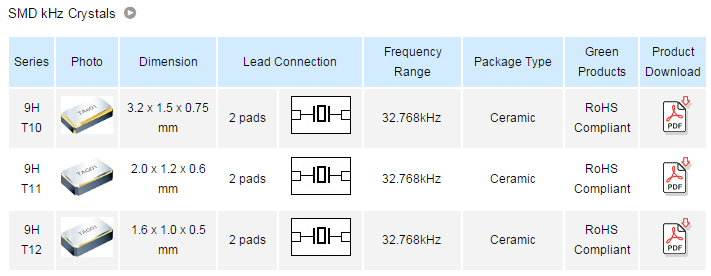 更多>>9HT7-32.768KDZF-T臺灣晶技32.768K編碼系列