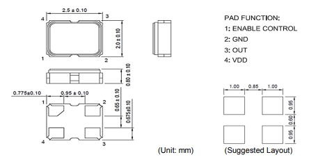 | Frequency頻率 | 25 MHz | Termination 腳位 | 4 pad |