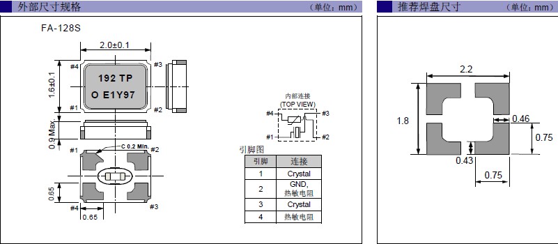EPSON晶振,進(jìn)口晶振,FA-128S晶振,兆赫茲晶振,FA-128S 19.2000MF12Y-AG3